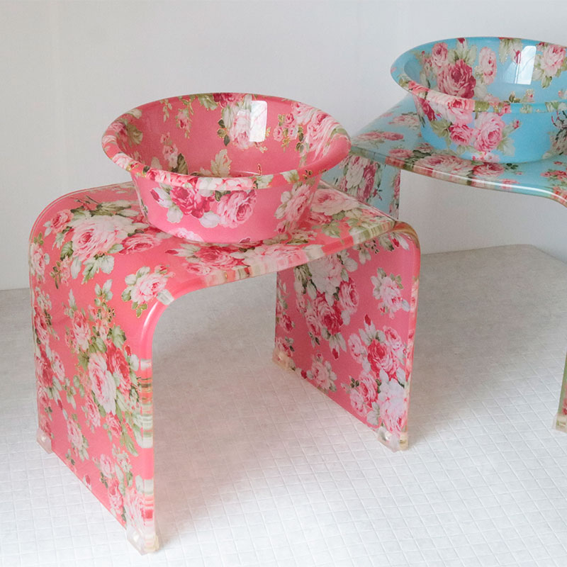 カプリローズ アクリル バスチェアL&深型ボウルセット カプリローズ/カプリローズブルー
