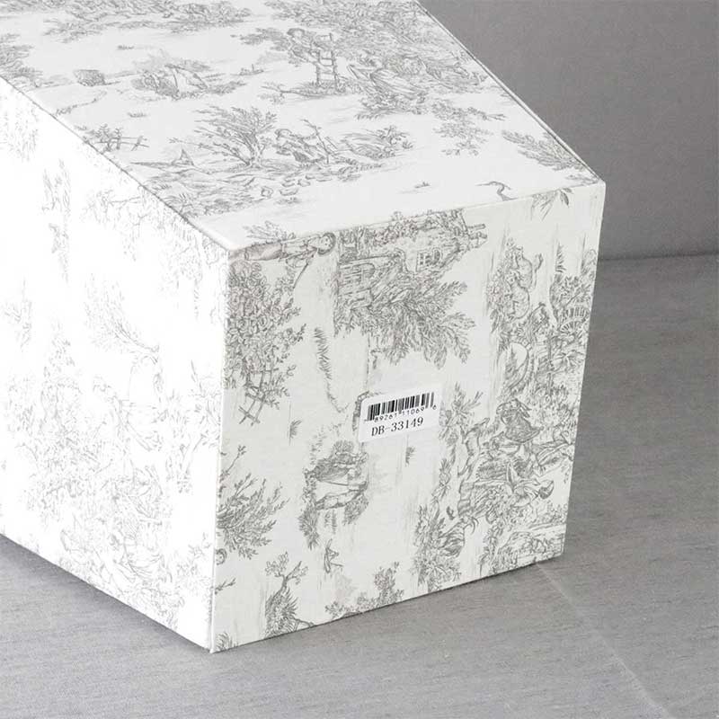 白地にグレージュでフランスの裕福な田園風景が描かれた「トワルドジュイ」。ダストBOXとしてだけでなくマガジンやスリッパを入れるボックスなど小物収納としても使用できます。