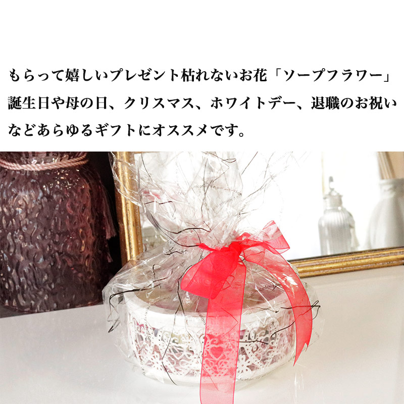 もらって嬉しいプレゼントに枯れないお花「ソープフラワー」。誕生日や母の日、クリスマス、ホワイトデー、退職のお祝いなどあらゆるギフトにオススメです。