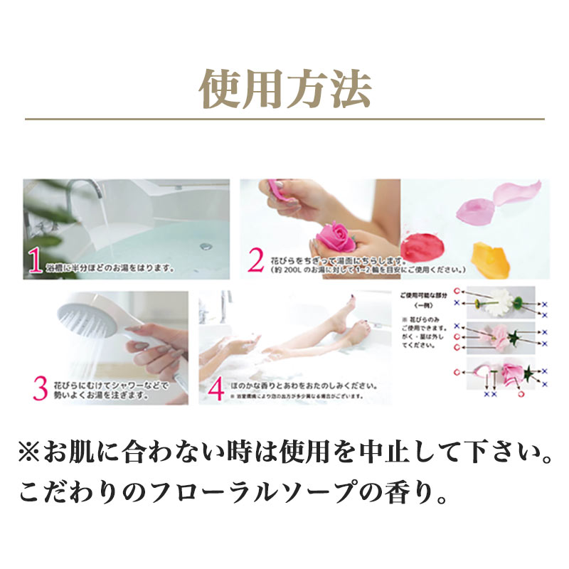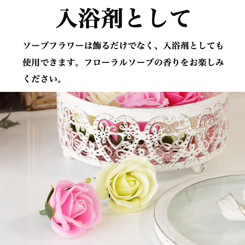 ソープフラワーは飾るだけでなく、入浴剤としても使用できます。フローラルソープの香りを楽しみください。
