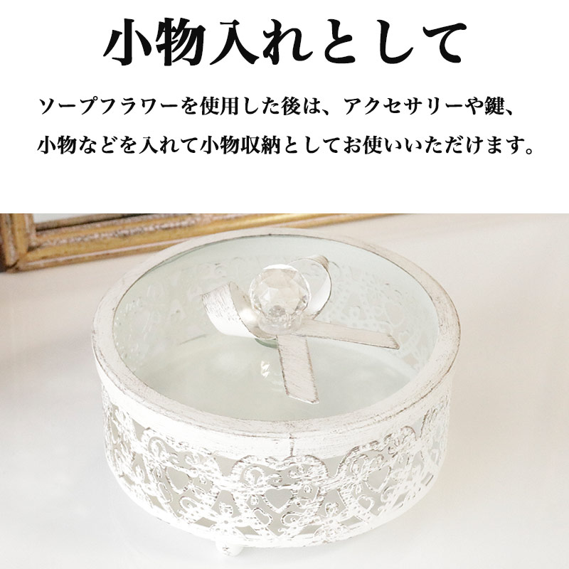 ソープフラワーを使用した後は、アクセサリーや鍵、小物などを入れて小物収納としてお使いいただけます。