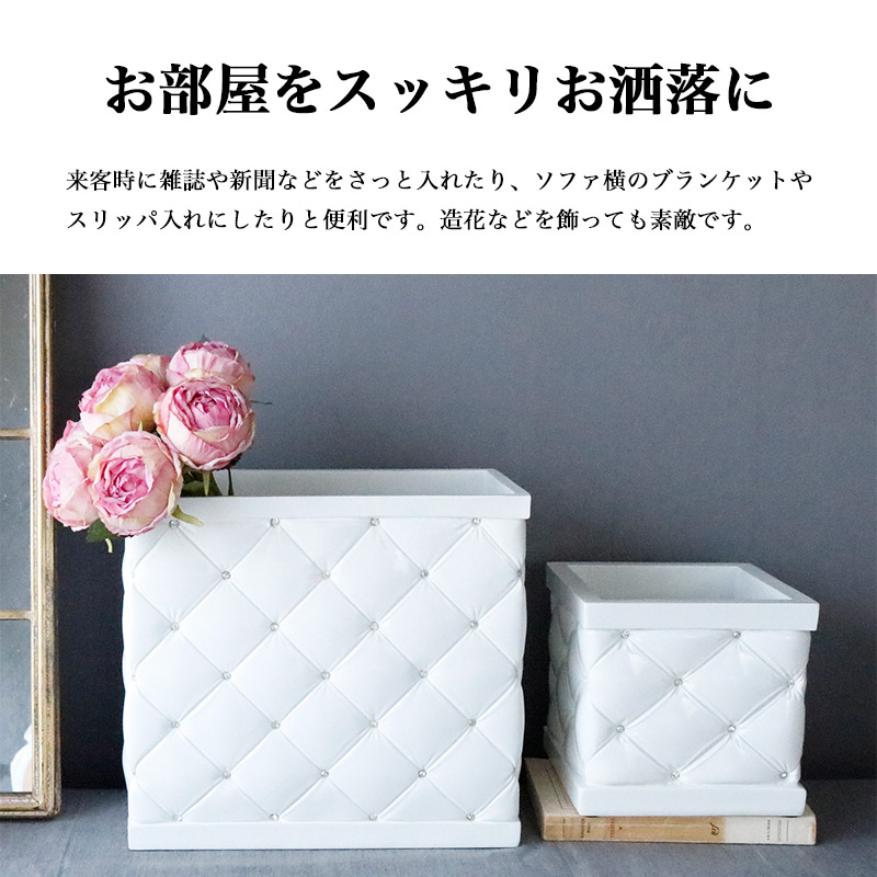 来客時に雑誌や新聞などをさっと入れたり、ソファ横のブランケットやスリッパ入れにしたりと便利です。造花などを飾ってもおしゃれです。