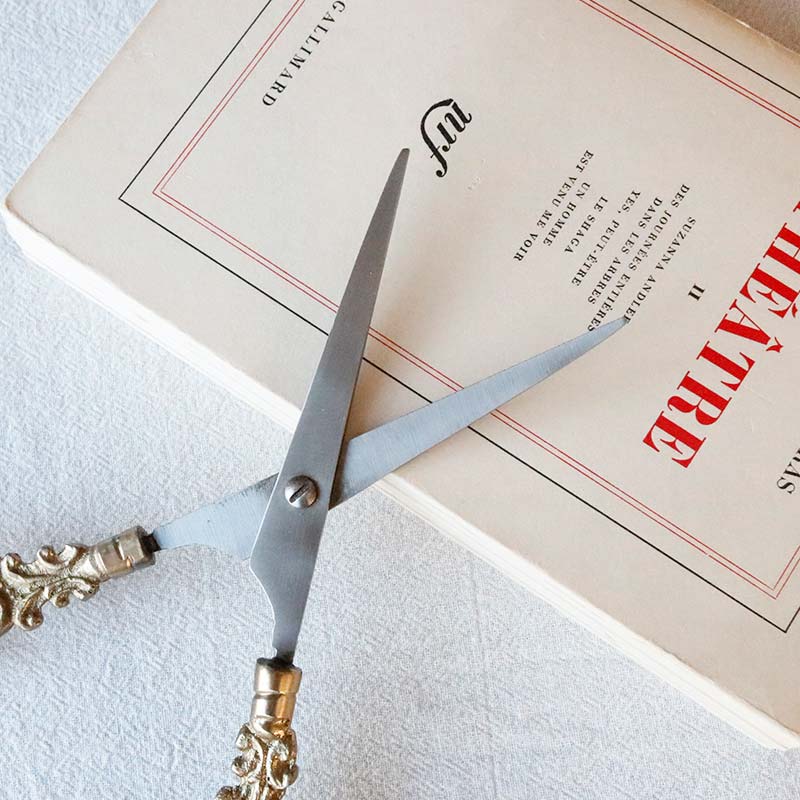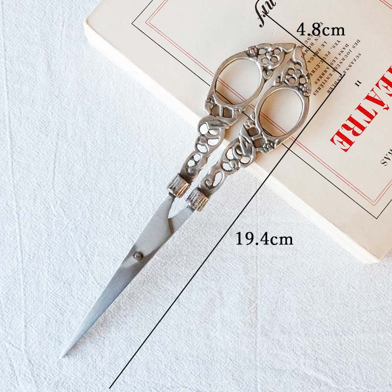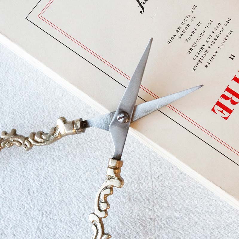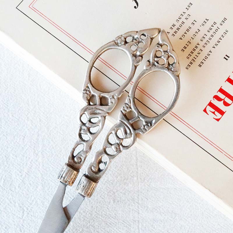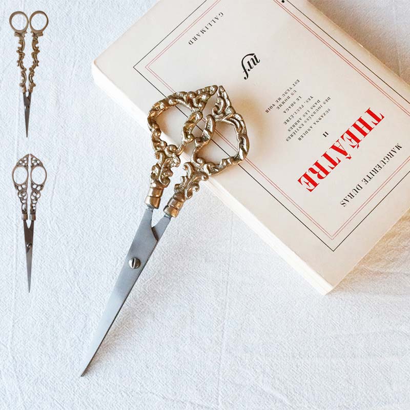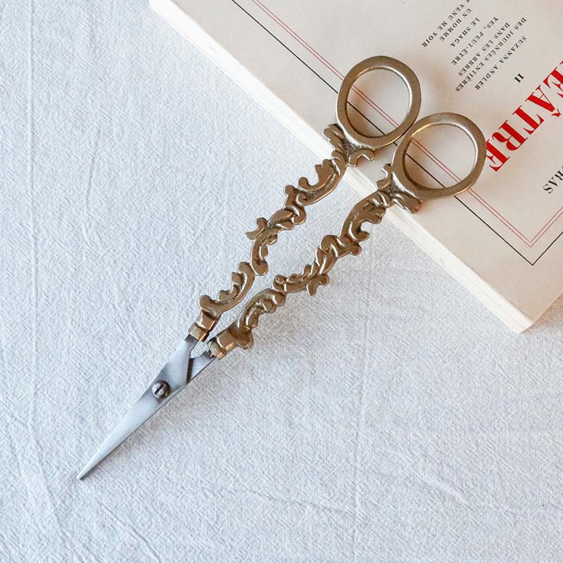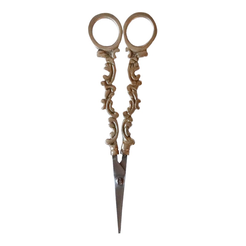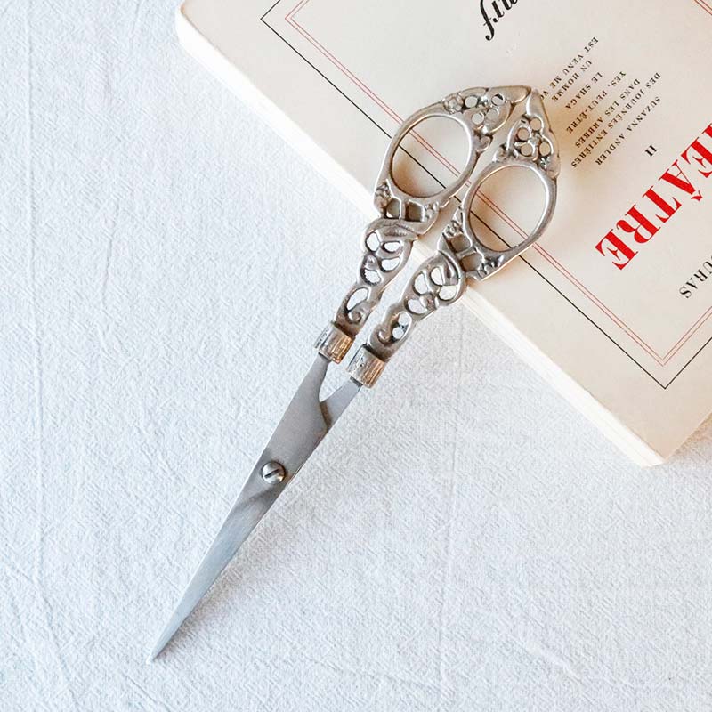 まるでヨーロッパの蚤の市にありそうな、アラベスクデザインの華奢な持ち手のハサミです。