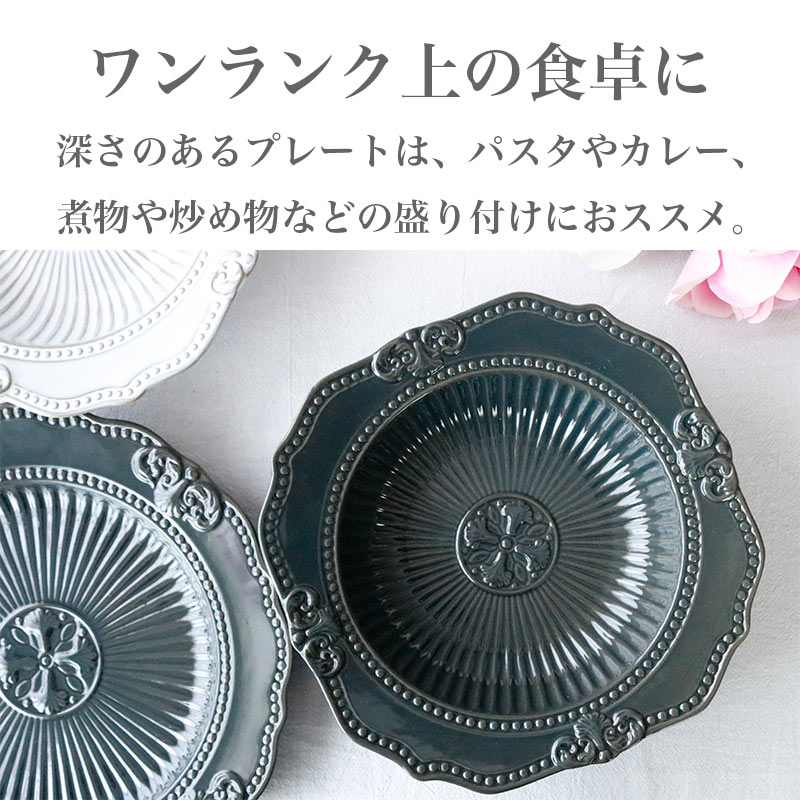 【深皿 24cm】アンティーク調 パスタ皿 カレー皿 洋食器 おしゃれ 食器 プレート 皿 煮物 サラダ 電子レンジ対応