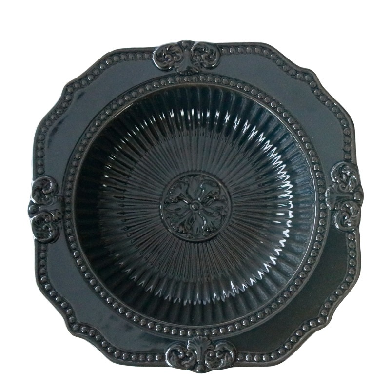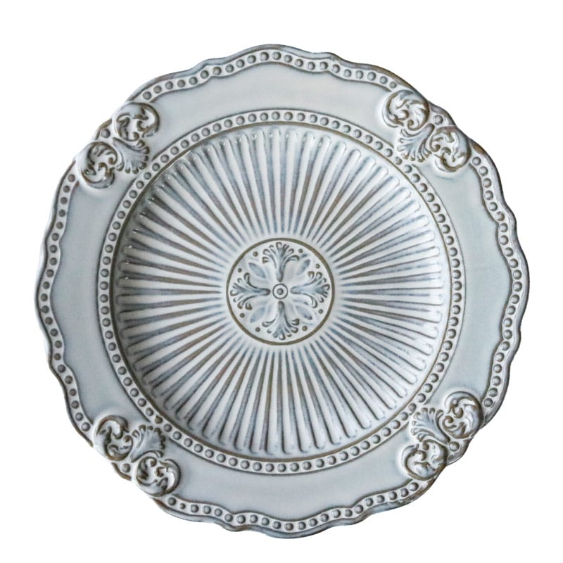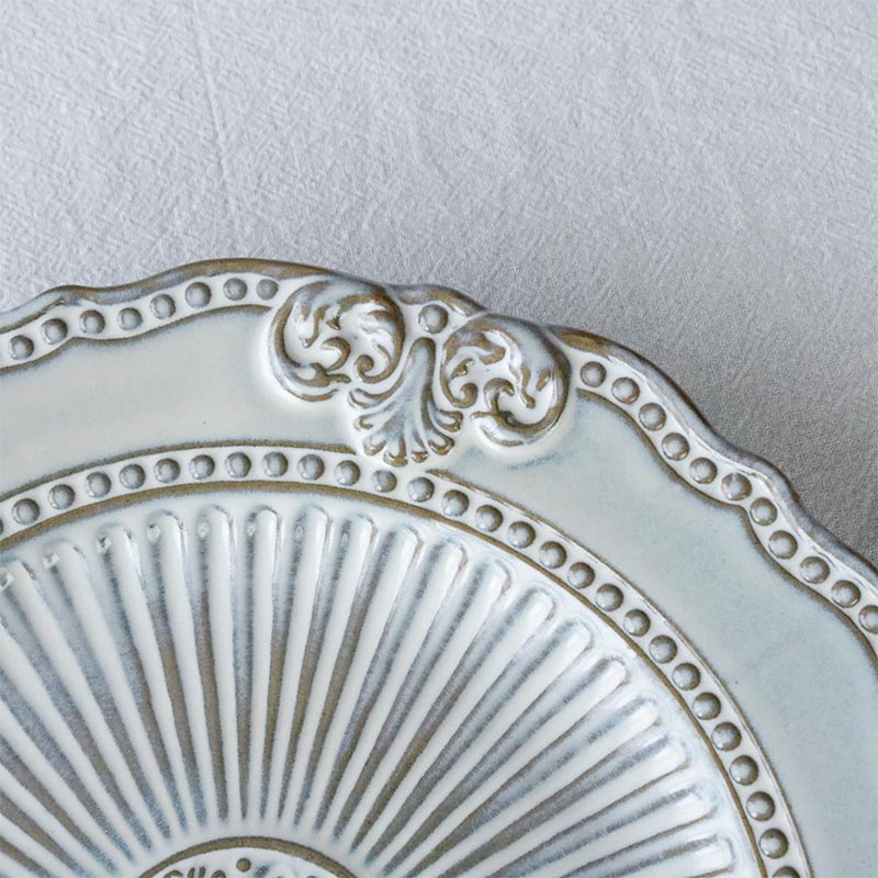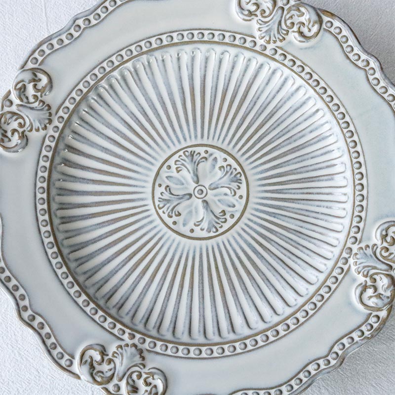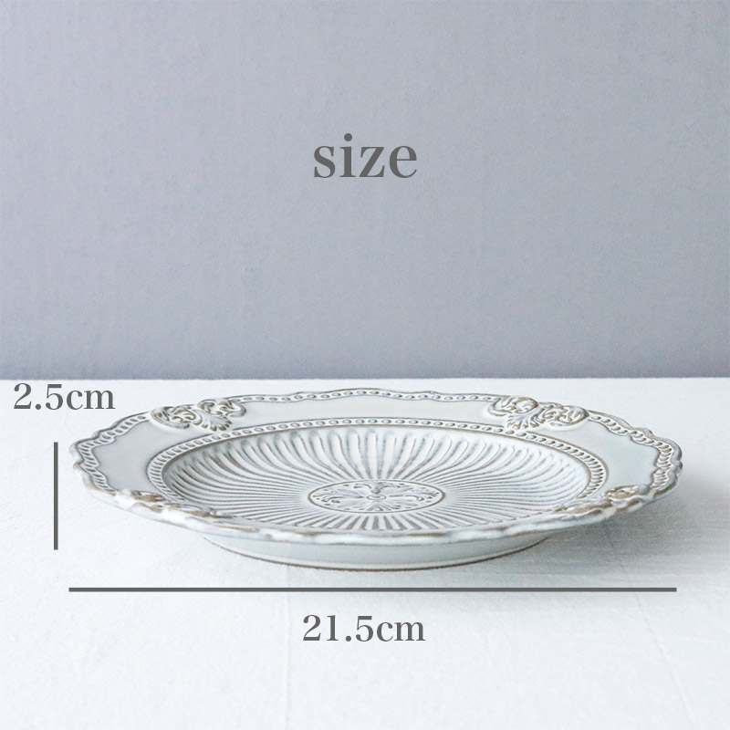 【ディアナ プレート 21cm】北欧風 アンティーク調 おしゃれ食器 高級感 クラシックデザイン 陶器製 ケーキ皿 サラダ皿 レリーフ模様 カフェ風テーブルウェア