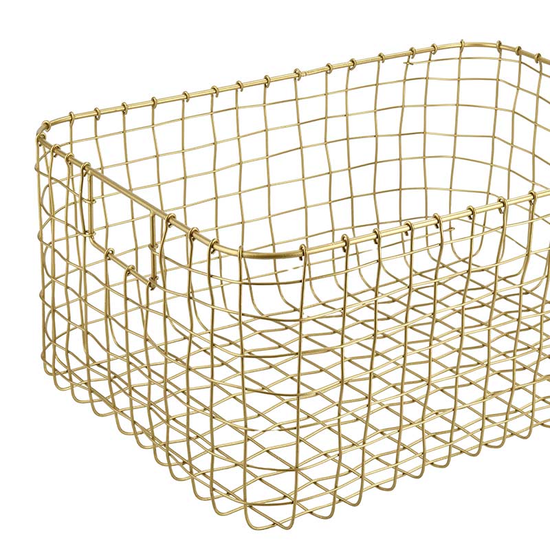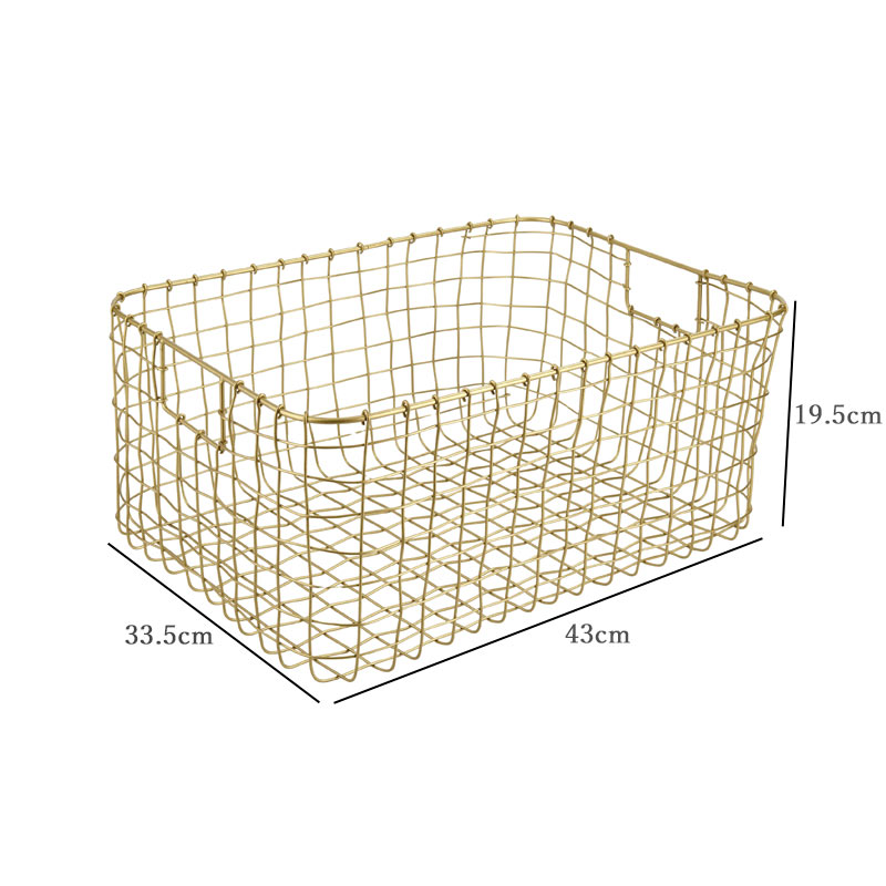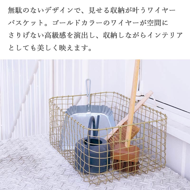 無駄のないデザインで、見せる収納が叶うワイヤーバスケット。ゴールドカラーのワイヤーが空間にさりげない高級感を演出し、収納しながらインテリアとしても美しく映えます。