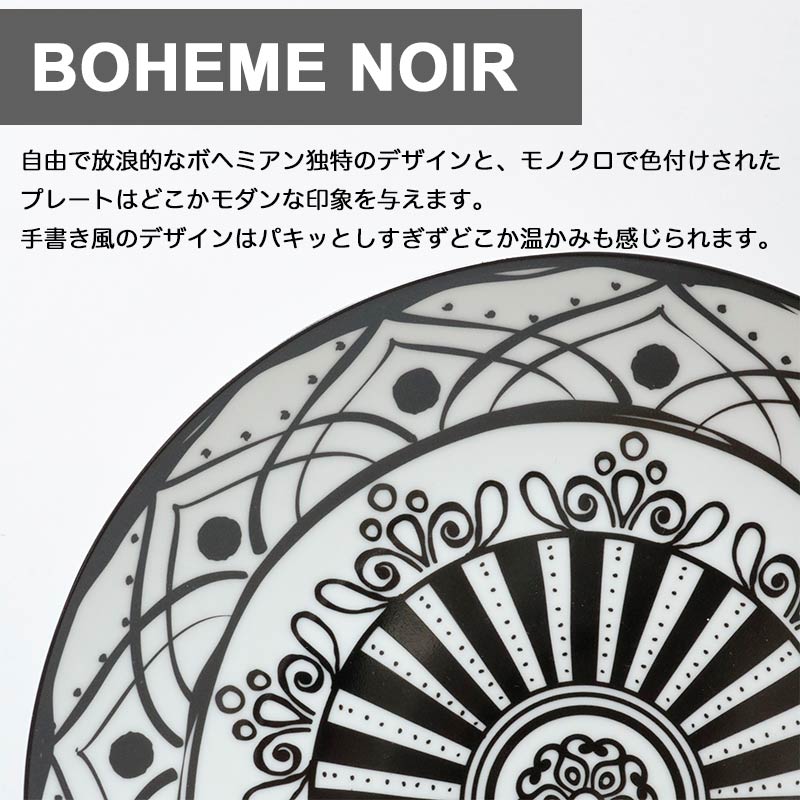 - 自由で放浪的なボヘミアン独特のデザインと、モノクロで色付けされたプレートはどこかモダンな印象を与えます。