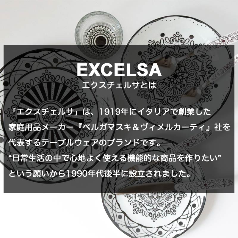 - 「エクスチェルサ」は、1919年にイタリアで創業した家庭用品メーカー『ベルガマスキ&ヴィメルカーティ』社を代表するテーブルウェアのブランドです。