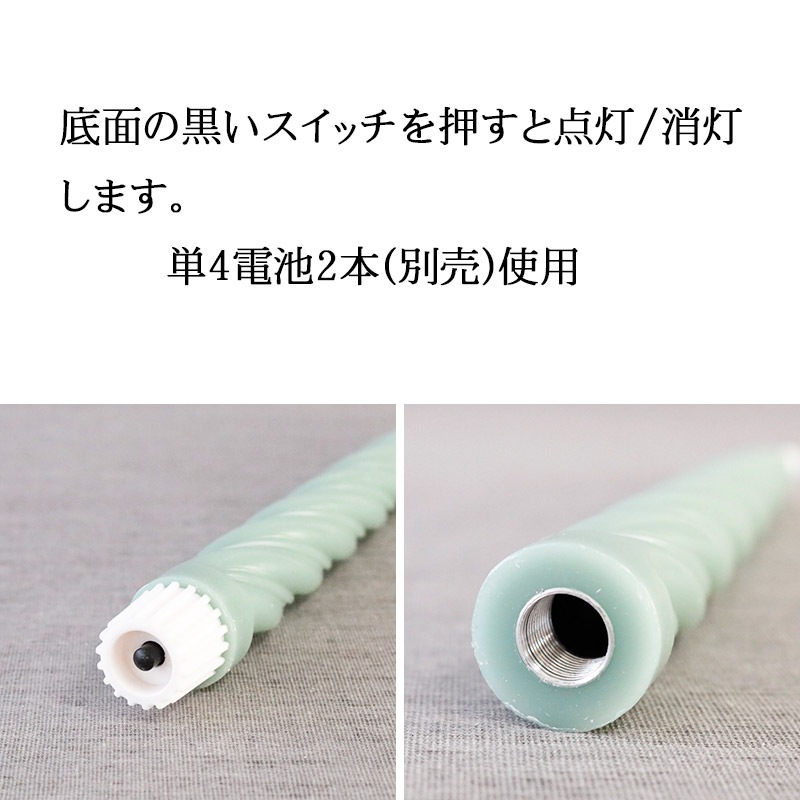 底面の黒いスイッチを押すと点灯/消灯します。単4電池2本(別売)使用