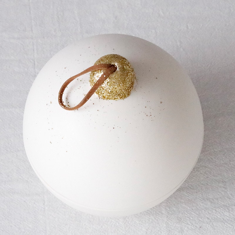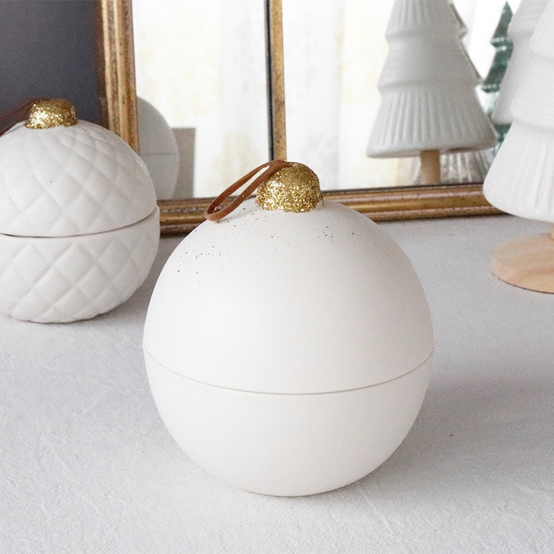 ボール状のオーナメントの中にフレグランスキャンドルが詰め込まれた