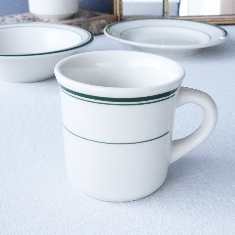 アメリカダイナーを思わせる肉厚なボディにグリーンバンドがテーブルのスパイスになります。