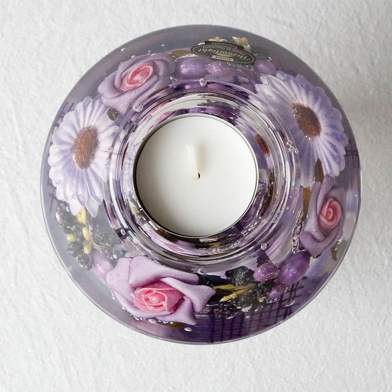電気を消してキャンドルの灯りを楽しんだり、ガラスの器にアレンジされたアーティフィシャルフラワーをお楽しみください。