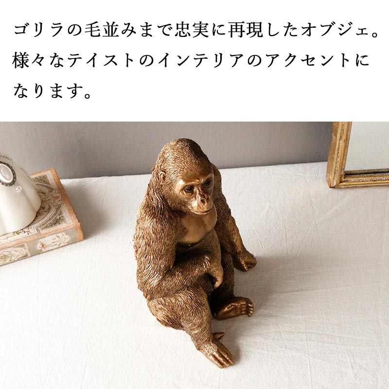 ゴリラの毛並みまで忠実に再現したオブジェ。様々なテイストのインテリアのアクセントになります。