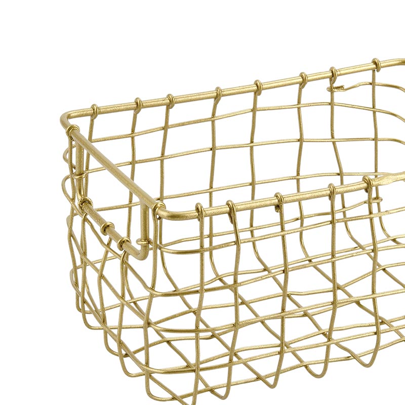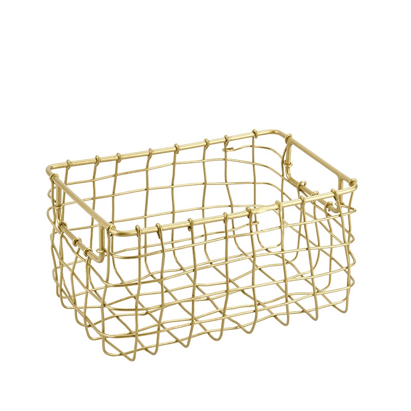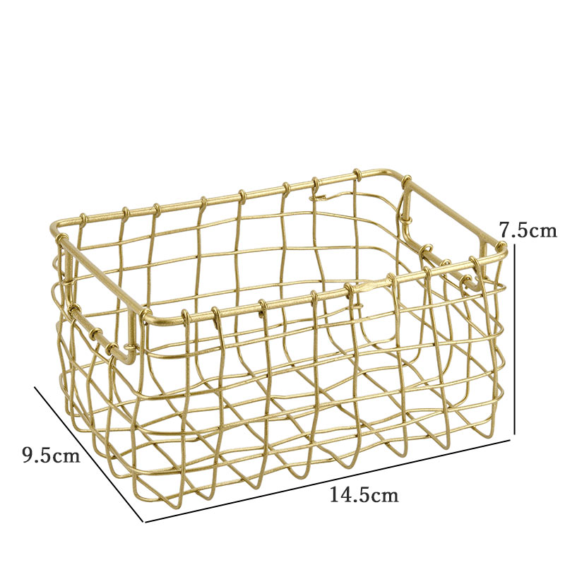 コンパクトながら抜群の収納力を発揮するワイヤーバスケット。ゴールド調の上品なワイヤーデザインが、キッチンやリビング、デスク周りをおしゃれに彩る万能アイテムです。